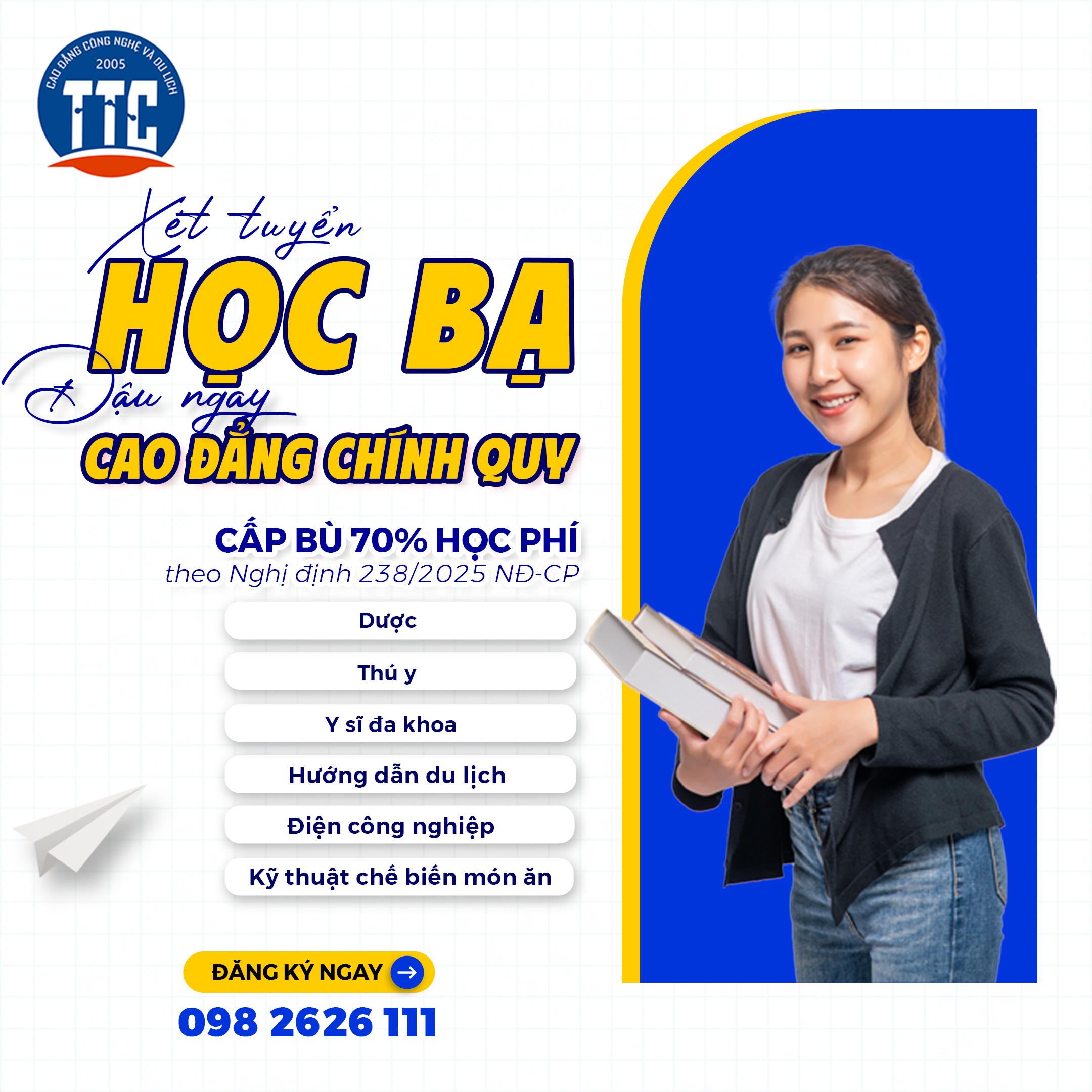 🚨 TRƯỜNG CAO ĐẲNG CÔNG NGHỆ VÀ DU LỊCH TUYỂN SINH CAO ĐẲNG CHÍNH QUY NĂM 2026: CƠ HỘI HỌC TẬP TẠI TTC DÀNH CHO 2K8