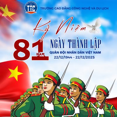 🌻 Hòa trong không khí kỷ niệm 81 năm Ngày thành lập Quân đội Nhân dân Việt Nam (22/12/1944 – 22/12/2025), Trường Cao đẳng Công nghệ và Du lịch xin gửi lời tri ân đến các chiến sĩ đã không quản ngại gian khổ vì Tổ quốc. Kính chúc các chiến sĩ luôn mạnh khỏe, vững vàng ý chí và hoàn thành xuất sắc mọi nhiệm vụ được giao!