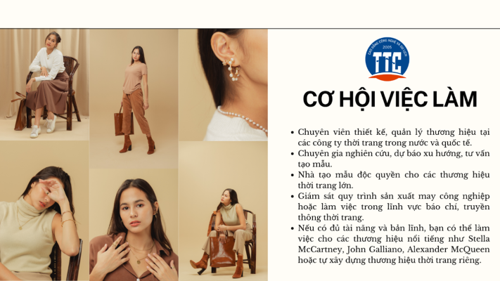 Việt Nam hiện là một trong những quốc gia có ngành may mặc phát triển mạnh, với hàng chục nghìn xưởng gia công từ doanh nghiệp trong nước đến các thương hiệu thời trang quốc tế. Điều này mở ra cơ hội việc làm rộng lớn cho sinh viên theo học ngành Thiết kế Thời trang. Sau khi tốt nghiệp, sinh viên có thể đảm nhận các vị trí như: